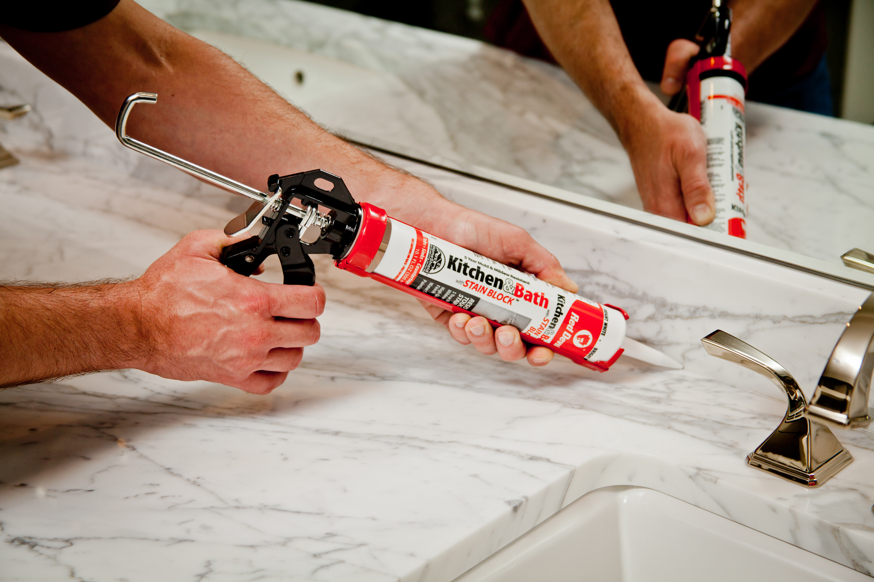 The industry leader in waterproof silicone sealants, Red Devil has a full range of options specifically engineered for bathroom and kitchen projects. To keep your home fresh and free from chemical smells, we offer Low-Odor Kitchen & Bath Silicone Sealant options in various sizes and colors. We also offer a complete line of stain-resistant silicone sealants with our Kitchen & Bath Stain Block™ products, as well as a full range of Siliconized Acrylic & Bath Sealants.