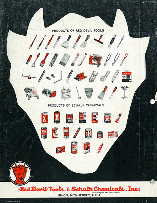 1966 – The recent diversification of product lines, including chemical products, leads the company to change its name to the more encompassing Red Devil, Inc.